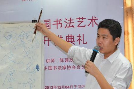 Chen Jianxin is from the China Calligraphy Association. He volunteered to teach at the 1st Chinese Calligraphy Training Class in Hanoi, Vietnam on December 4, 2013.